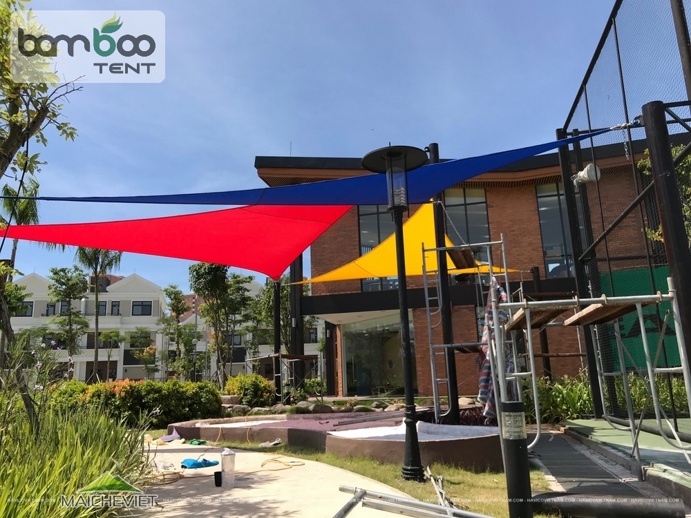 Bạt tam giác giúp không gian trở nên sinh động và tinh tế hơn. Khi kết hợp nhiều tấm bạt, bạn có thể tạo nên hình khối độc đáo, phù hợp với mọi phong cách kiến trúc từ hiện đại đến tự nhiên. Bạt có nhiều màu sắc như trắng, kem, xanh rêu, ghi xám… giúp dễ phối hợp theo từng không gian.