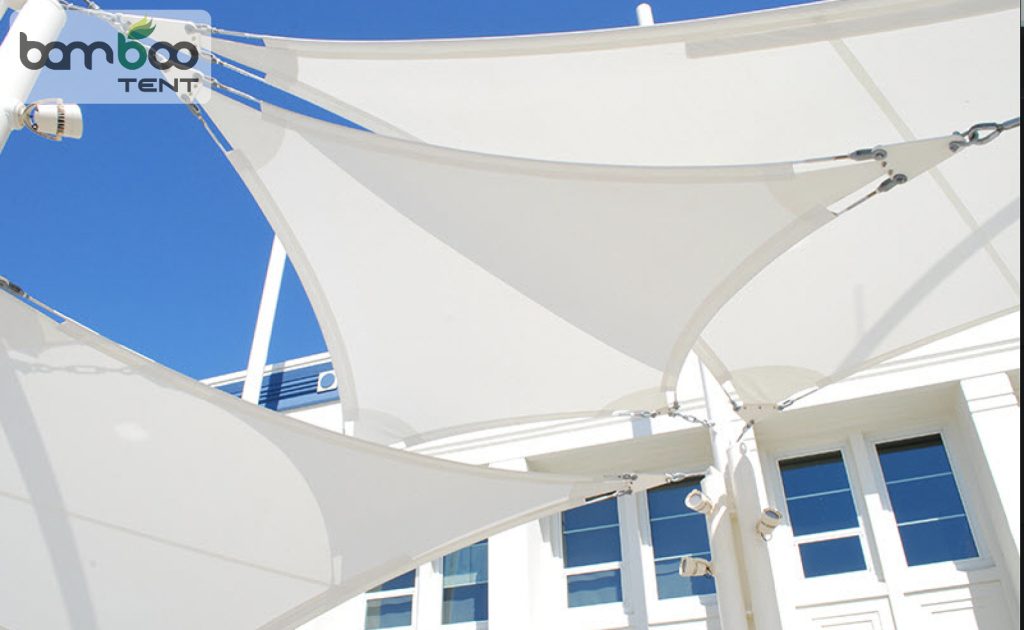 Mái Che Bạt Căng Nghệ Thuật thường dùng chất liệu PVC, PVDF hoặc PTFE. Đây là những loại vật liệu cao cấp, có khả năng chống tia UV và kháng cháy lan. Ngoài ra, bạt còn chịu lực tốt và bền bỉ với thời tiết.